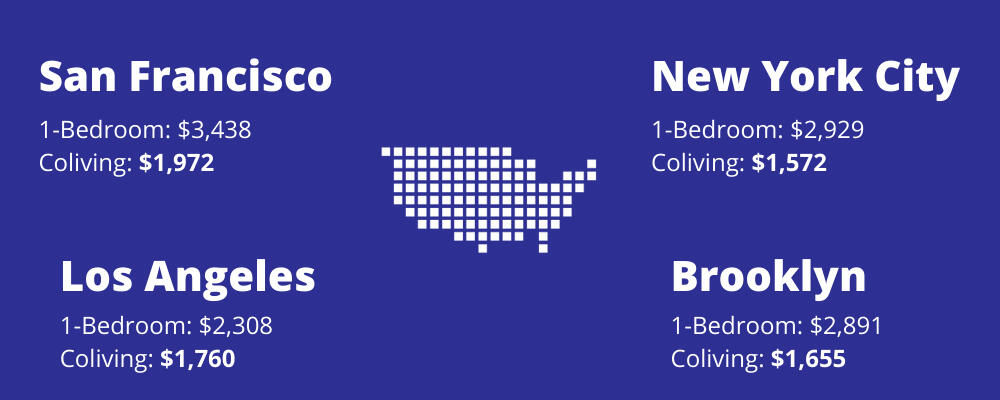 You'd think with all the benefits of coliving it would be more expensive than traditional renting, but that's not the case. You can save as much as 47% a month in New York City and 43% in San Francisco.